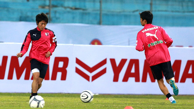 | Các cầu thủ Cerezo Osaka khởi động trước trận đấu. Ảnh: Nam Khánh |