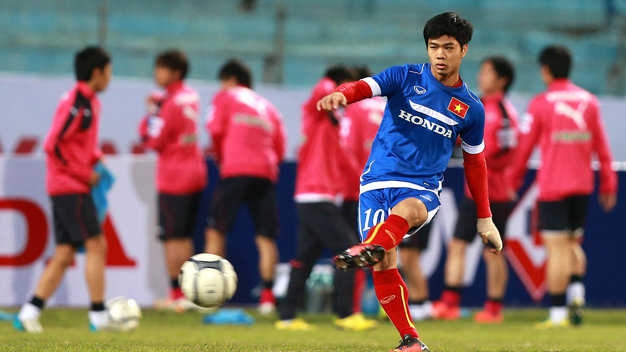 | Công Phượng khởi động trước trận đấu. Ảnh: Nam Khánh |