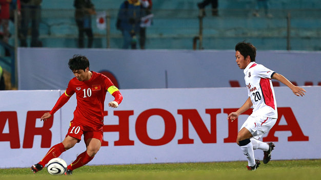 | Công Phượng đi bóng trước sự truy cản của hậu vệ Cerezo Osaka. Ảnh: Nam Khánh |