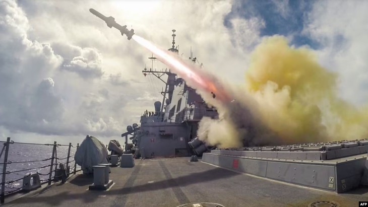 Tàu khu trục mang tên lửa dẫn đường của Hải quân Mỹ đã bắn vào tàu chở hàng treo cờ Iran đang tìm cách né tránh lệnh phong tỏa - Ảnh minh họa: AFP