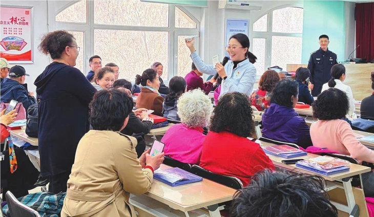 Cảnh sát TP Thẩm Dương hướng dẫn người cao tuổi nhận diện các chiêu thức lừa đảo sản phẩm sức khỏe - Ảnh: NHÂN DÂN NHẬT BÁO