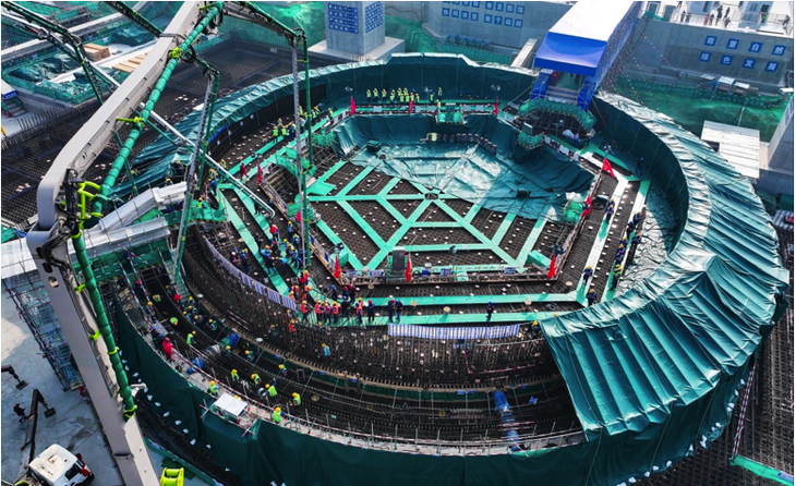 Lễ đổ mẻ bê tông đầu tiên, đánh dấu khởi công xây dựng đảo hạt nhân tổ máy số 1 thuộc giai đoạn 1 dự án điện nhiệt hạt nhân Từ Vệ (Xuwei) tại Trung Quốc - Ảnh: Xinhua