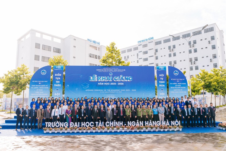 Lễ khai giảng năm học 2025 của Trường Đại học Tài chính - Ngân hàng Hà Nội - Ảnh: FBU