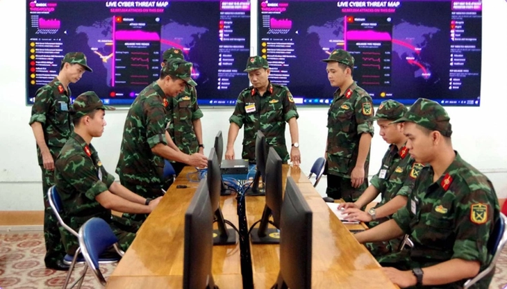Học viên đào tạo sĩ quan chỉ huy - tham mưu tác chiến không gian mạng, Trường Sĩ quan Thông tin diễn tập - Ảnh: Trường Sĩ quan Thông tin