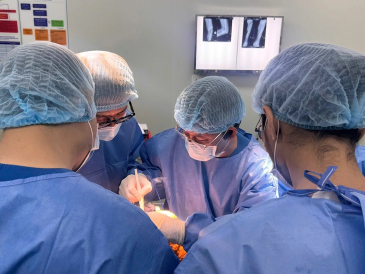 Bác sĩ Nam Anh và ekip trong một ca phẫu thuật thay khớp gối - Ảnh: HT