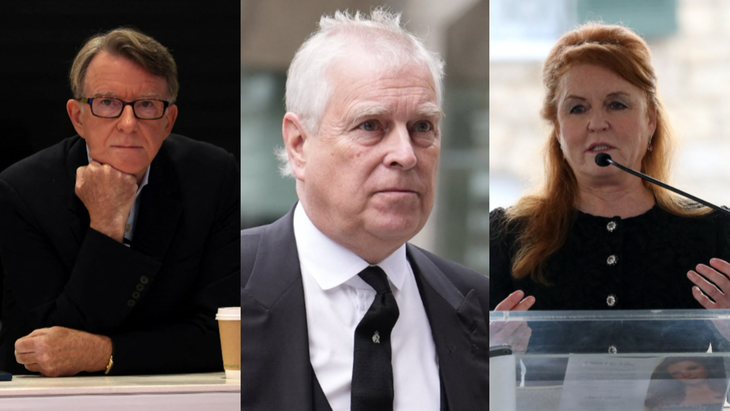 Từ trái sang phải: cựu Đại sứ Anh tại Mỹ Peter Mandelson, cựu Hoàng tử Anh Andrew, vợ cũ của ông Andrew là bà Sarah Ferguson - Ảnh: REUTERS
