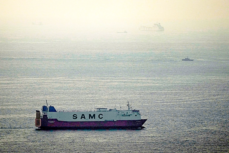 Các tàu chở hàng di chuyển tại vịnh Ả Rập hướng về eo biển Hormuz. Ảnh chụp ở Các Tiểu vương quốc Ả Rập thống nhất hôm 19-3 - Ảnh: AP