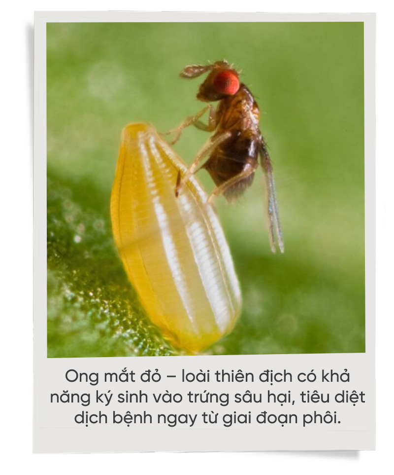 Đó là ong mắt đỏ - loài thiên địch có khả năng ký sinh vào trứng sâu hại, tiêu diệt dịch bệnh ngay từ giai đoạn phôi.