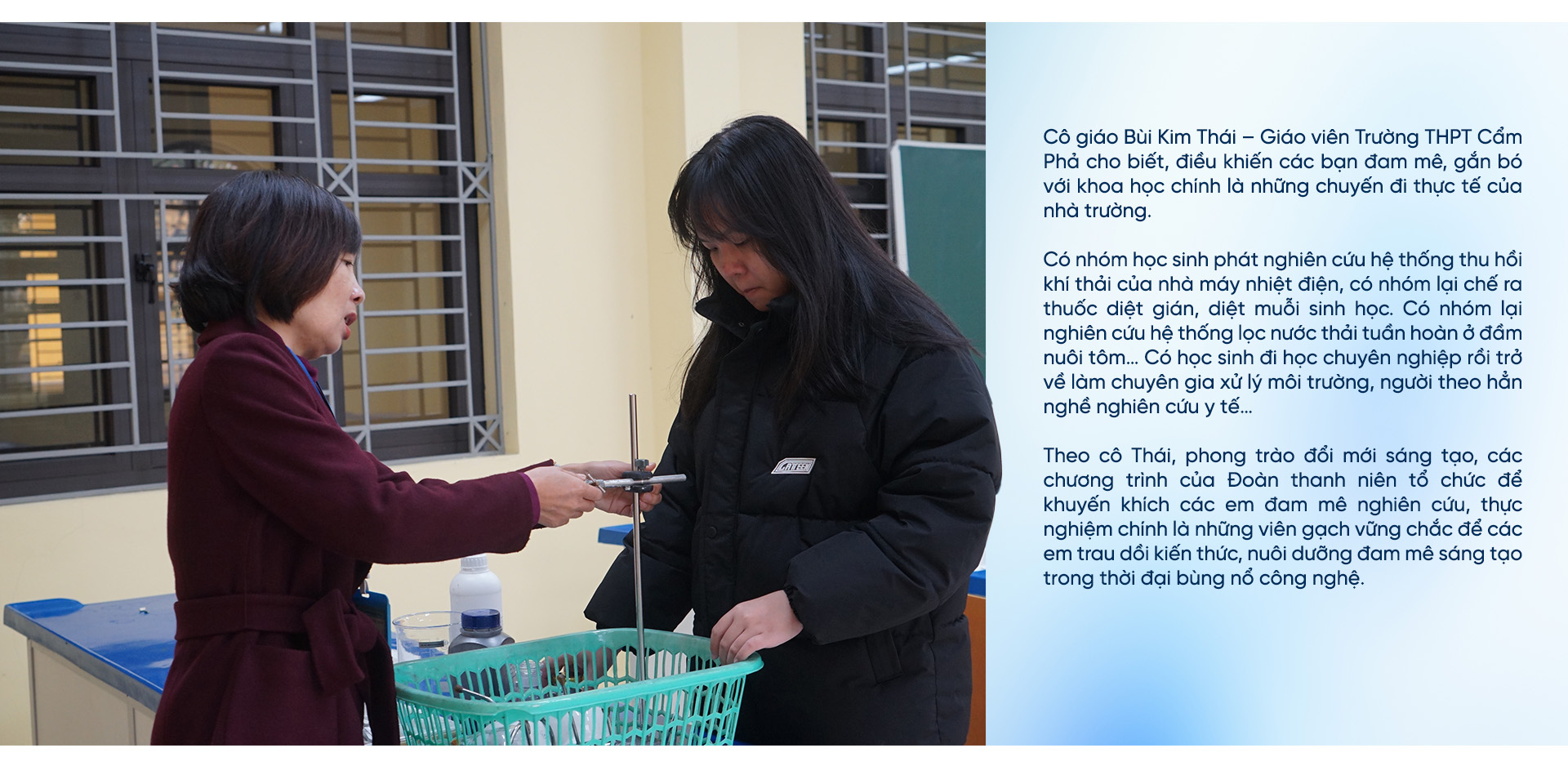 Hai bạn trẻ Đỗ Thùy Trang, Nguyễn Hoàng Vũ được giáo viên hướng dẫn thực hiện từ ngày các bạn đang học lớp 11.