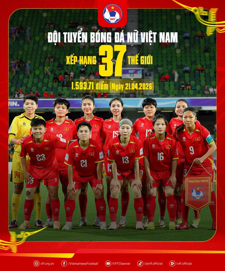 Theo bảng xếp hạng FIFA, tổng số điểm của tuyển nữ Việt Nam là 1.593,71 điểm, đứng thứ 37 thế giới, ngay dưới đội tuyển Nigeria (1.602,04 điểm). Được biết thứ hạng này được tính dựa trên thành tích thi đấu của tuyển nữ Việt Nam ở SEA Games 33 và vòng chung kết nữ châu Á 2026.