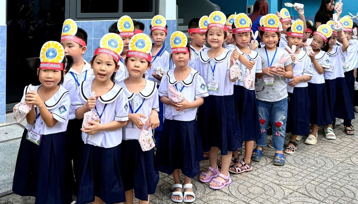 Học sinh lớp 1 Trường tiểu học Chính Nghĩa (phường Chợ Lớn, TP.HCM) trong ngày khai giảng năm học 2025 - 2026 - Ảnh: H.H.