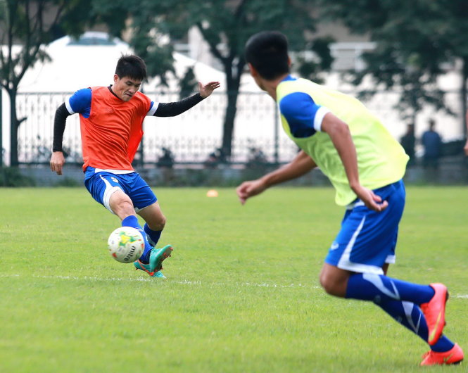 | Thành Lương hướng tới trận lượt đi bán kết với thái độ tập luyện tích cực. Ảnh: Nam Khánh |