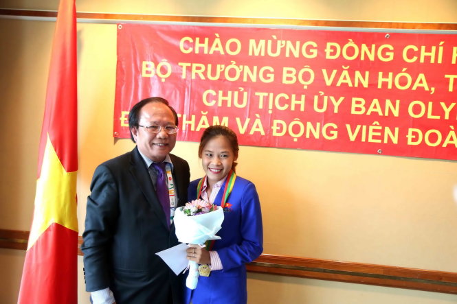 Cũng trong buổi gặp gỡ, Bộ trưởng Hoàng Tuấn Anh đã trao HCV SEA Games 27 cho VĐV Nguyễn Thị Thanh Phúc. Ở Myanmar năm 2013, Thanh Phúc chỉ đoạt HCB nội dung đi bộ 20km nhưng mới đây được BTC thông báo đôn lên giành HCV do VĐV chủ nhà dính doping. Ngoài ra, bộ trưởng cũng trao quà tặng cho bốn VĐV đấu kiếm đã giành HCV tại SEA Games 28.