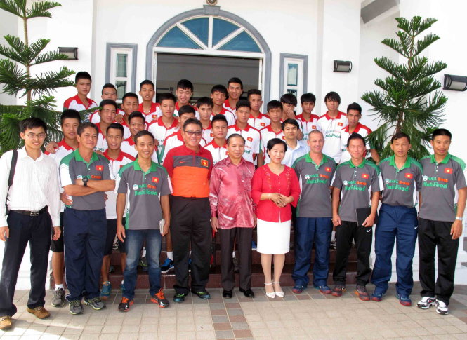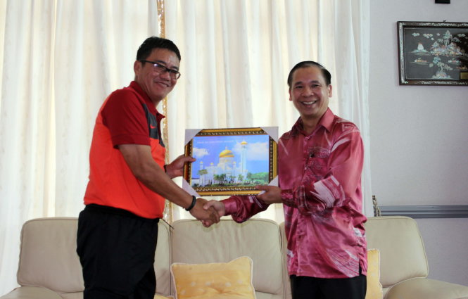 Tiếp đón đoàn, Đại sứ VN tại Brunei Nguyễn Trường Giang cùng các nhân viên đại sứ quán đã hỏi thăm tình hình thi đấu và cơ hội lọt vào bán kết của đội tuyển U-19 VN. Thay mặt đội, trưởng đoàn Dương Vũ Lâm đã tặng Đại sứ Nguyễn Trường Giang chiếc áo thi đấu có đầy đủ chữ ký của các thành viên đội tuyển U-19 VN. Đáp lại, Đại sứ Nguyễn Trường Giang cũng tặng cho toàn đội bức tranh 3D hình nhà thờ Hồi giáo Jame Asr – biểu tượng của đất nước Brunei.