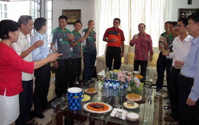 | Toàn đội chụp hình lưu niệm với Đại sứ Nguyễn Trường Giang và các nhân viên Đại sứ quán VN tại Brunei. Ảnh: N.K |
