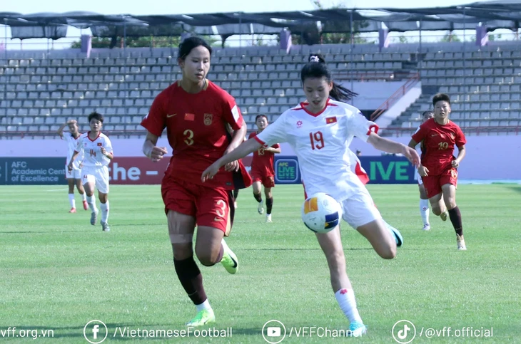 Dù rất nỗ lực nhưng U20 nữ Việt Nam (áo trắng) không thể làm nên bất ngờ trước U20 nữ Trung Quốc - Ảnh: VFF