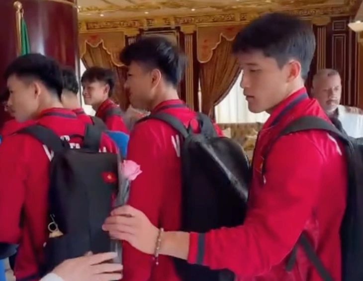 U23 Việt Nam được đón tiếp nồng hậu tại khách sạn - Ảnh: VFF