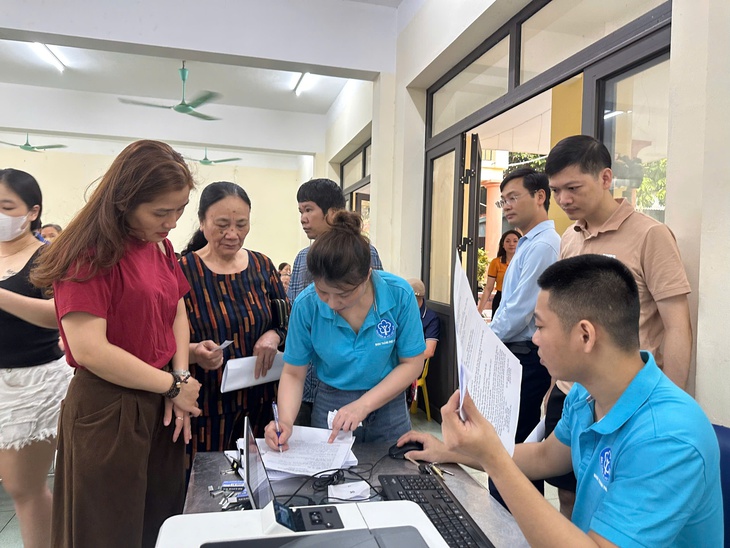 Bảo hiểm xã hội thành phố Hà Nội phối hợp với Trung tâm Phục vụ hành chính công số 7 hỗ trợ, hướng dẫn người dân thực hiện ủy quyền nhận lương hưu, trợ cấp bảo hiểm xã hội tại phường Hà Đông - Ảnh: Bảo hiểm xã hội Hà Nội