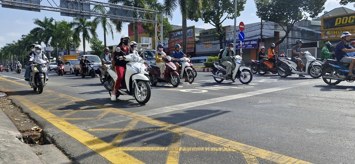 “Kẻ vạch như vậy để quy định bắt buộc xe gắn máy phải đậu phía trên để chờ, chứ không được dừng đỗ trên vạch mắt võng”, ông Ngoan nói và cho biết nếu xe dừng đỗ trên vạch mắt võng, xe gắn máy đi sau không có khoảng trống để lên phía trên.