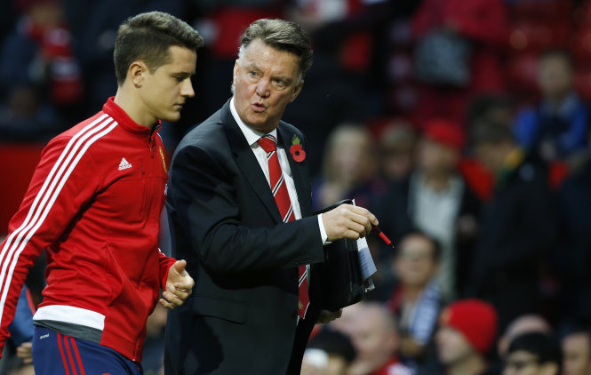 | Ông Van Gaal (phải) trong trận M.U thắng Watford. Ảnh: Reuters |