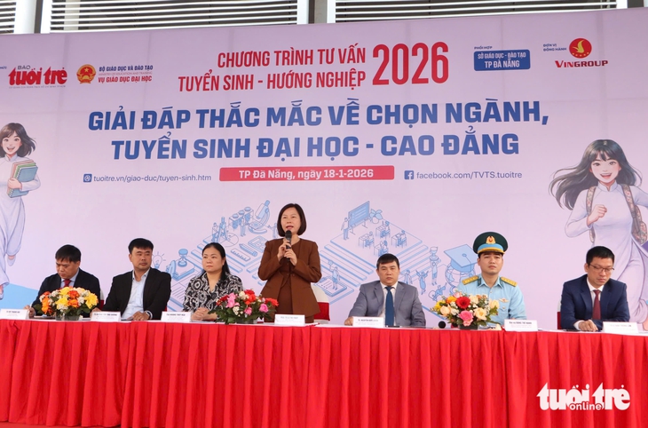 ThS Hoàng Thúy Nga - đại diện Vụ Giáo dục đại học (Bộ Giáo dục và Đào tạo) chuyển đến các bạn những thông tin mới nhất mà thí sinh cần lưu ý trước mùa thi và tuyển sinh năm nay - Ảnh: THANH NGUYÊN