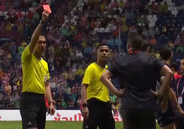Khán giả không hiểu vì sao HLV của Buriram United lãnh thẻ đỏ. Sau đó, truyền hình chiếu lại cảnh ban huấn luyện hai đội lời qua tiếng lại sau bàn thắng của Alan và góp ý của trọng tài thứ 4.