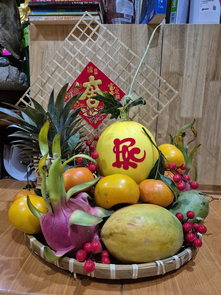 Mâm trái cây cúng giao thừa của một gia đình - Ảnh: NGỌC HÂN