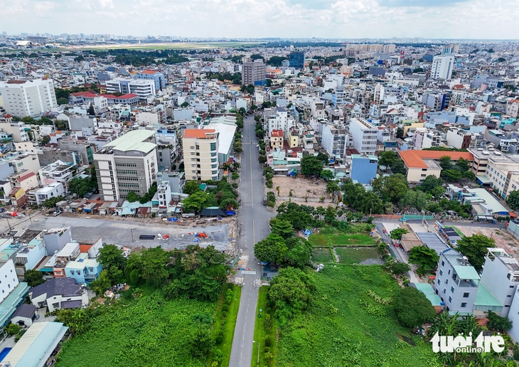 Khu vực đường Dương Quảng Hàm (bên trái) giáp với Nguyễn Văn Lượng, công viên văn hóa Gò Vấp khi xây dựng năm 2024 - Ảnh: CHÂU TUẤN