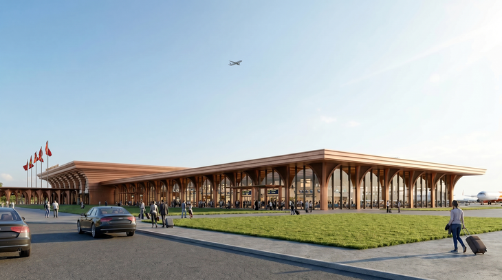 Nhà ga hành khách sân bay Phan Thiết rộng 18.000 m² với thiết kế lấy cảm hứng từ văn hóa bản địa Champa - Ảnh: S.G
