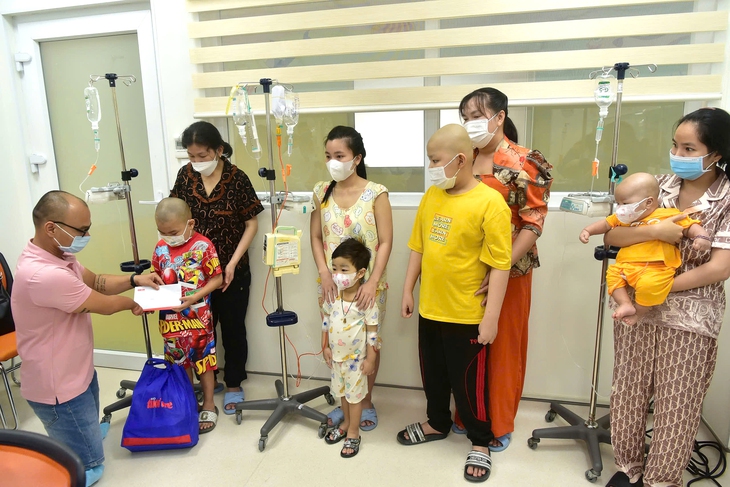 Vận động viên bơi lội khuyết tật Nguyễn Hồng Lợi trao quà 1-6 cho các bệnh nhi ung thư trong chương trình Ước mơ của Thúy do báo Tuổi Trẻ tổ chức - Ảnh: T.T.D.