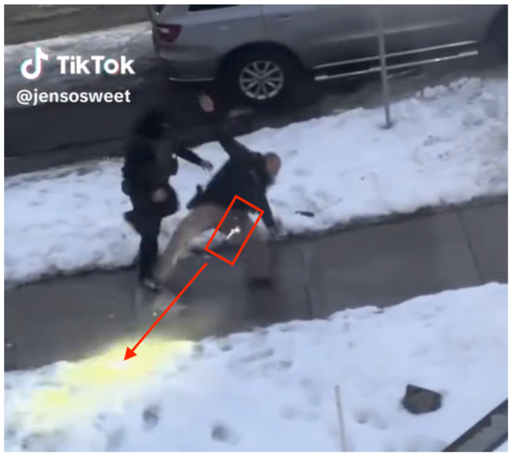 Đoạn video lan truyền rằng hai đặc vụ bị trượt ngã trên băng và súng của một trong hai đặc vụ đã cướp cò - Video TIktok/@Jensosweet