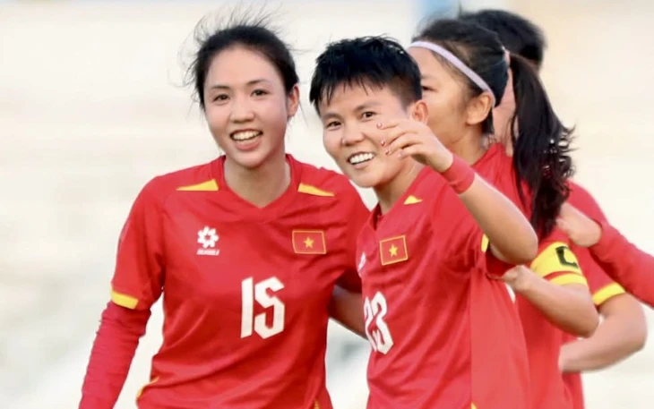 Tất cả người hâm mộ, các cầu thủ nữ cùng ban huấn luyện đội tuyển nữ Việt Nam đã ăn mừng bàn thắng mở tỉ số. Tuy nhiên, trọng tài biên đã phạt lỗi việt vị đối với các cô gái áo đỏ.