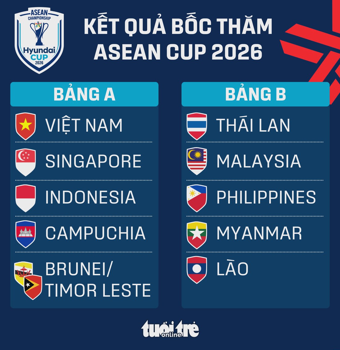 Việt Nam nằm ở bảng A ASEAN Cup 2026 cùng Singapore, Indonesia, Campuchia và Brunei/Timor Leste - Ảnh chụp màn hình
