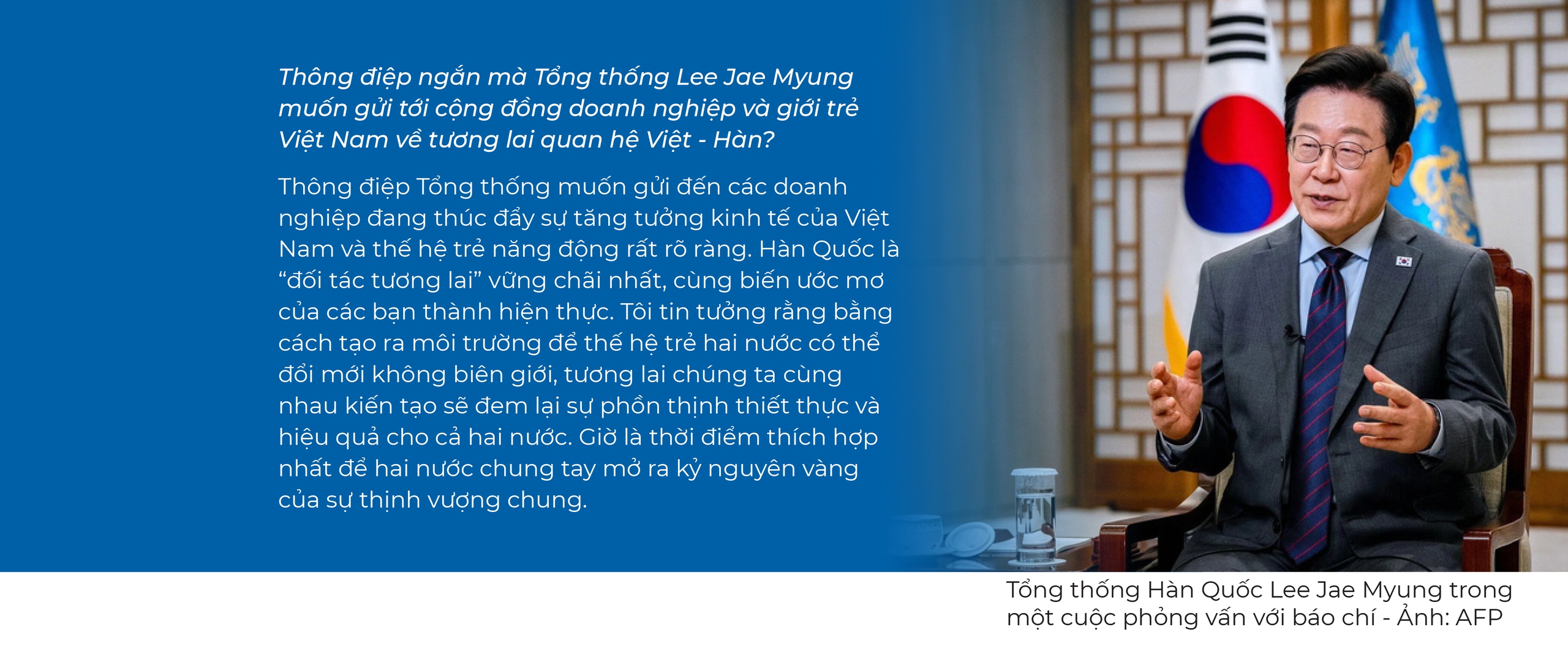 * Thưa Bộ trưởng, thông điệp cốt lõi Hàn Quốc muốn gửi tới Việt Nam qua chuyến thăm của Tổng thống Lee Jae Myung là gì? Hàn Quốc kỳ vọng chuyến thăm lần này tạo ra "bước ngoặt" nào để đưa quan hệ Việt - Hàn phát triển thực chất và hiệu quả hơn trên tất cả lĩnh vực?
