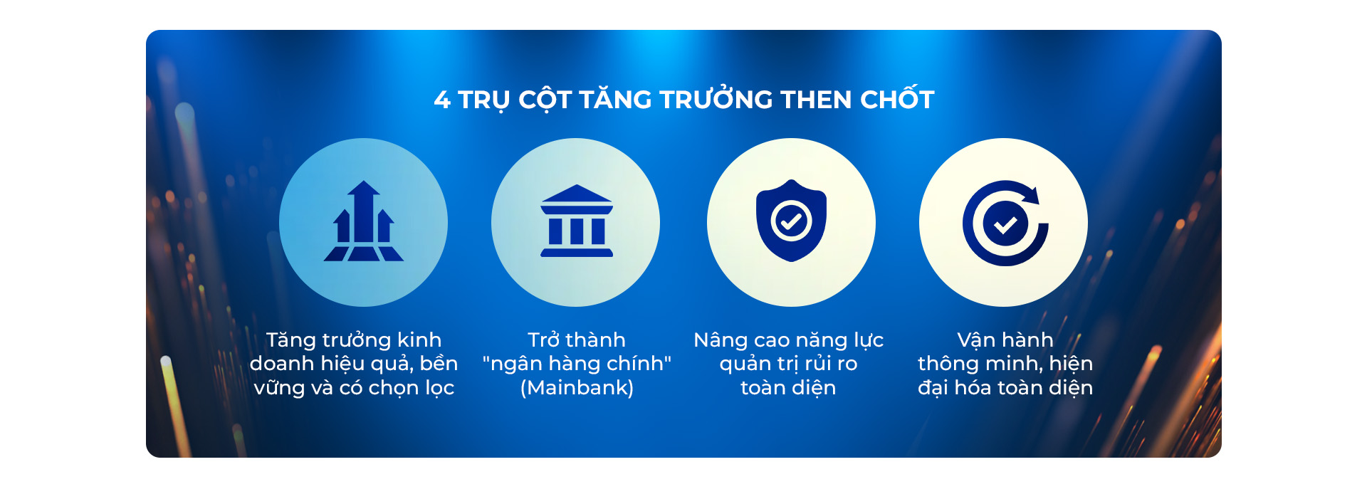 - Vận hành thông minh, hiện đại hóa toàn diện: Ngân hàng tái cấu trúc mạnh mẽ mạng lưới chi nhánh, phát triển các kênh bán hàng số và đặt dữ liệu cùng AI vào trung tâm của mọi quyết định vận hành.