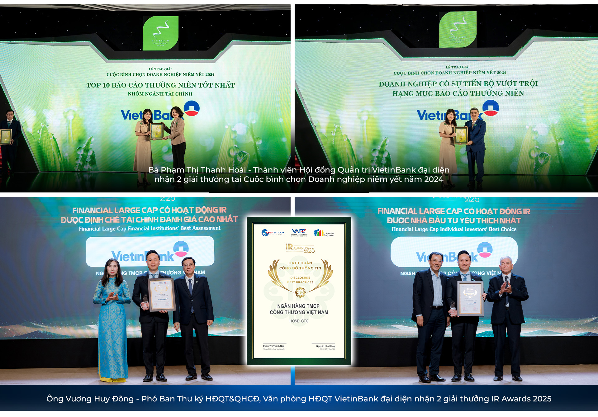 Năm 2025 đánh dấu cột mốc đặc biệt của VietinBank. Hai giải thưởng là sự ghi nhận cho nỗ lực không ngừng của VietinBank trong minh bạch hóa thông tin và củng cố niềm tin thị trường. Đồng thời nó còn khẳng định bước chuyển mình mạnh mẽ trong triết lý làm IR: minh bạch, chuyên nghiệp và hướng tới đối thoại.