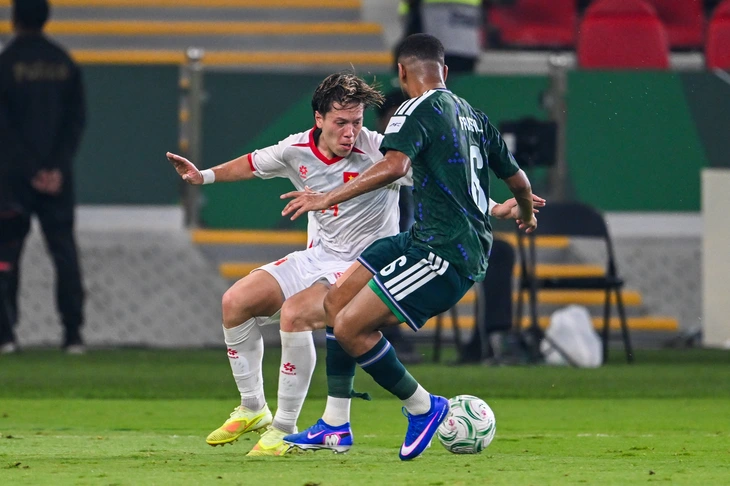 Viktor Lê (áo trắng) trong trận U23 Việt Nam gặp U23 Saudi Arabia - Ảnh: AFC