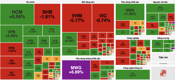 Cổ phiếu ngân hàng, doanh nghiệp bán lẻ phủ sắc xanh - Dữ liệu: VSF