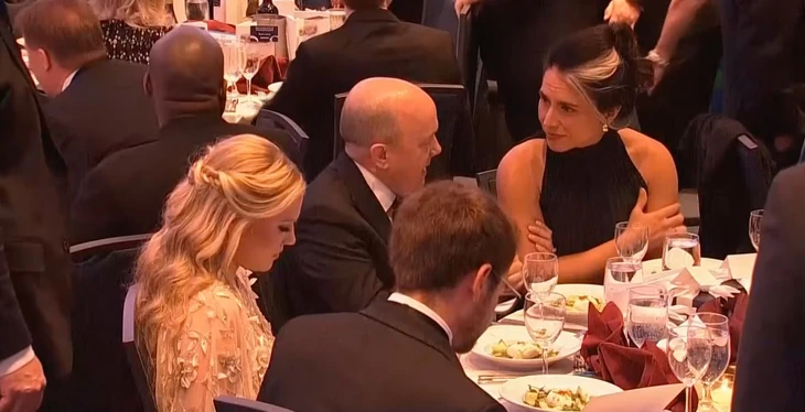 Bà Erika Kirk (trái, tóc bạch kim) tại bữa dạ tiệc ở thủ đô Washington (Mỹ) - Ảnh: INDEPENDENT