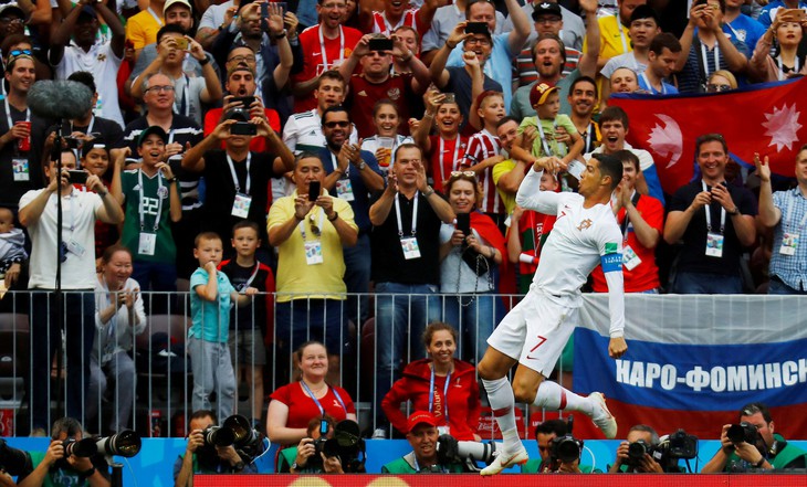 Ronaldo ăn mừng bàn thắng vào lưới tuyển Morocco - Ảnh: REUTERS