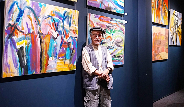 Không còn một kỷ lục gia với những bức vẽ phố cổ Bao Vinh quen thuộc, mà là những sắc màu trừu tượng mạnh mẽ, đường nét quyết liệt đánh thẳng vào thị giác, cuốn người xem vào thế giới nội tâm đầy cảm xúc của một họa sĩ cả đời mê vẽ.