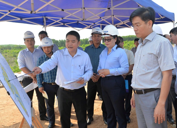 Ông Đỗ Tâm Hiển (phải), Phó chủ tịch UBND tỉnh, kiểm tra công tác giải phóng mặt bằng 2 dự án của VSIP ở Quảng Ngãi - Ảnh: TRẦN MAI