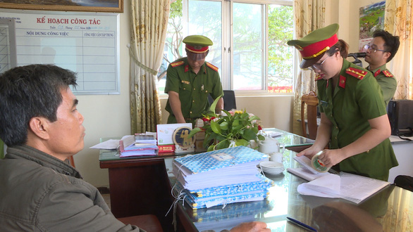 Công an khám xét phòng làm việc của ông Nguyễn Văn Tiên - nguyên trưởng Phòng tài nguyên và môi trường huyện Đông Hòa - khi bắt tạm giam ông vào tháng 2 - Ảnh: AN NGUYÊN