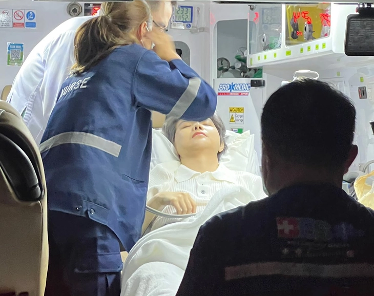 Hình ảnh Vũ Cát Tường đang được đưa lên xe cấp cứu - Ảnh: Facebook Vector Presents