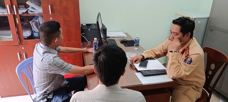Cảnh sát giao thông làm việc với tài xế và chủ xe - Ảnh: PC08