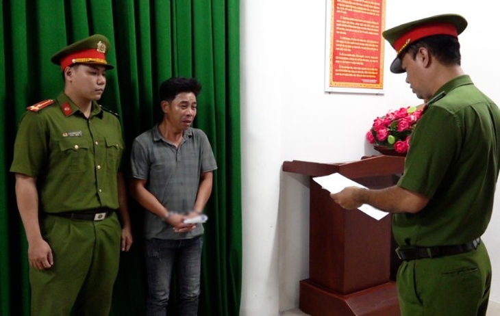 Công an tống đạt các quyết định tố tụng và thi hành lệnh bắt bị can để tạm giam đối với Nguyễn Ngọc Thắng - Ảnh: Công an tỉnh Khánh Hòa