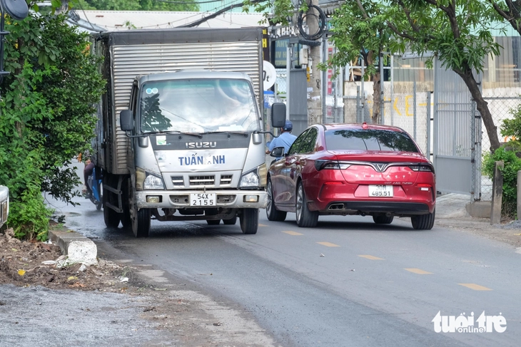 Đường Thạnh Xuân 25 nhỏ hẹp, thường ùn ứ vào giờ cao điểm - Ảnh: PHƯƠNG NHI
