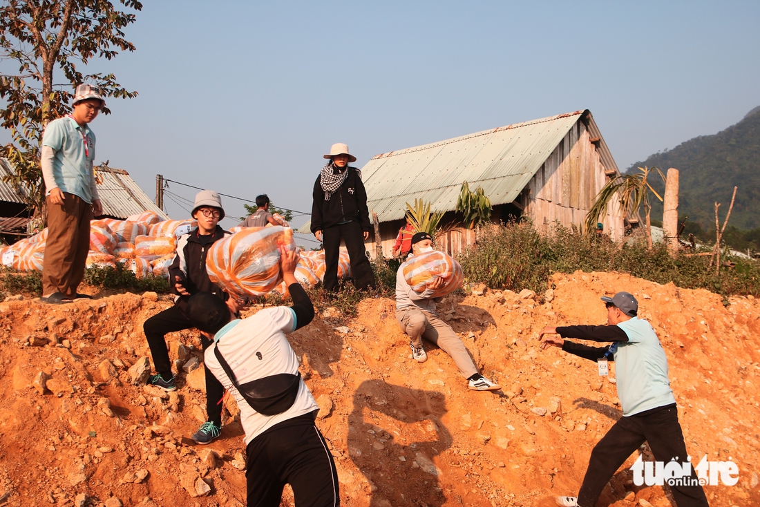 Ngày miền Trung đứng gió, con dốc dẫn vào thôn Sông Y (xã Trà Tân, thành phố Đà Nẵng) như dài thêm dưới cái nắng gắt đầu hè. Những chiếc ba lô, thùng đồ, cuộn dây… được chuyền tay nhau, có đoạn phải "cõng" qua con dốc dựng đứng.