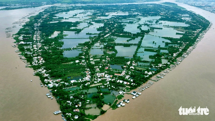 Toàn cảnh xã đảo Mỹ Hòa Hưng - nằm giữa sông Hậu - Ảnh: MINH KHANG