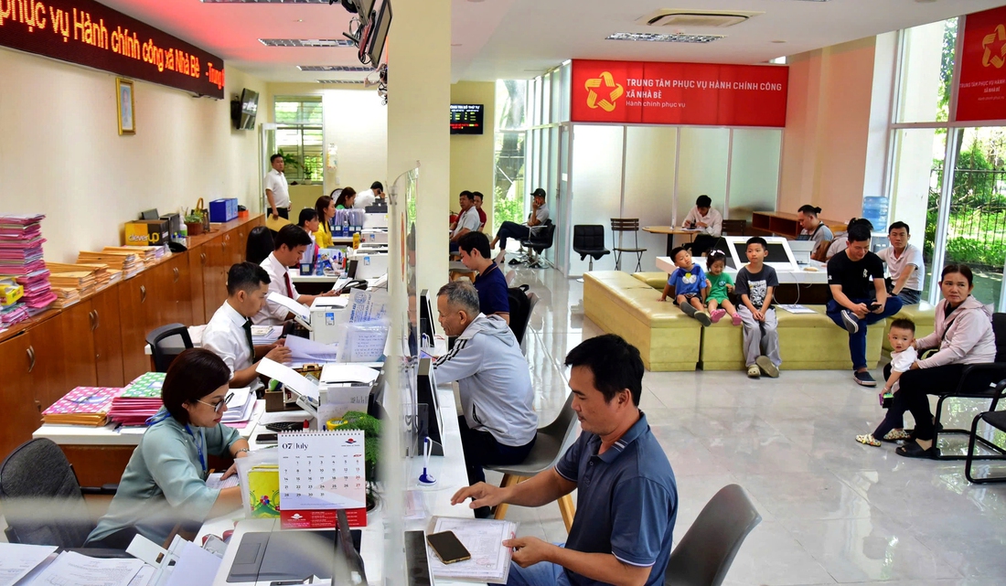 Người dân làm thủ tục hành chính tại Trung tâm phục vụ hành chính công xã Nhà Bè, TP.HCM - Ảnh: TRÍ ĐỨC